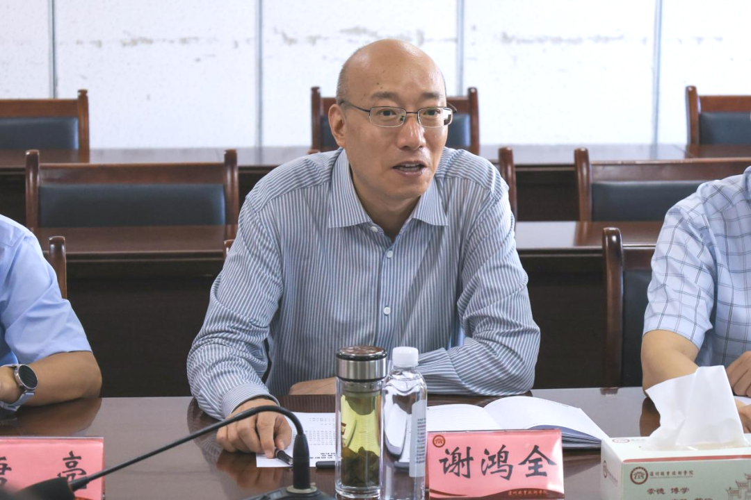 谢鸿全对刘兴勇一行的到来表示热烈欢迎,并介绍了学校的办学历史、专业布局、产教融合、校企合作等情况,重点分享了学校在“双高计划”建设过程中的实施路径、管理机制与创新举措。