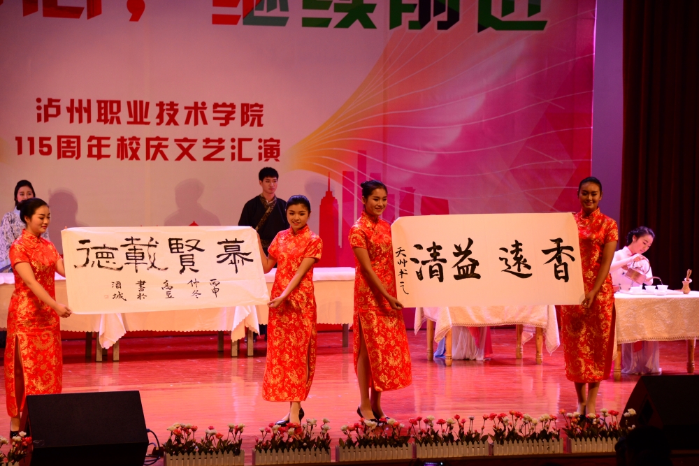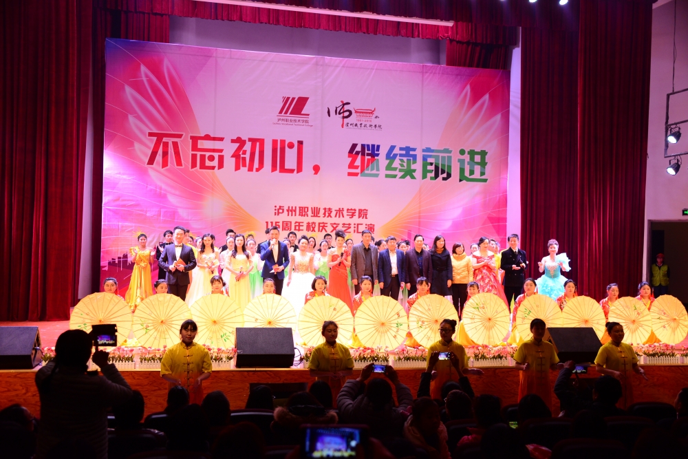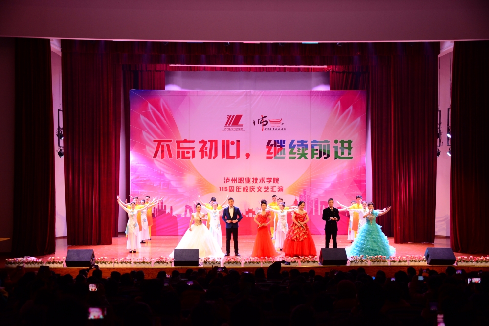今年,学院为庆祝建校115周年开展了一系列活动:中德职业教育合作论坛、115周年校庆暨纪念红军长征胜利80周年《长征组歌》音乐会、泸州市“自贸区建设与物流商贸发展论坛”、泸州市第十七届“忠山之秋”校园文化活动节。此次师生同台文艺汇演,为今年的校庆纪念活动画上了一个圆满的句号。