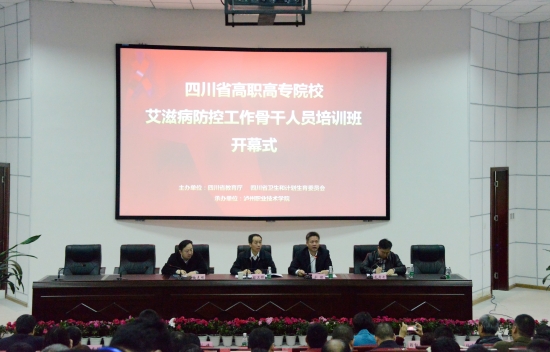 本站讯(信息来源:学生处)11月8日上午,四川省高职高专院校艾滋病防控工作骨干人员培训班开幕式在学院求实厅隆重举行。四川省教育厅巡视员胡卫锋,四川省卫生和计划生育委员会副巡视员刘捷,泸州市政府副秘书长佘克明,四川省卫生和计划生育委员会重大疾病传播处处长杨莉,四川省疾病预防控制中心副主任张灵麟,四川省教育厅预防艾滋病专家组组长张建新,中国疾控中心性病艾滋病预防控制中心宣传教育与信息室主任王璐,学院院长贺元成教授,学院党委副书记、纪委书记张爽等领导出席培训班开幕式。全省58所高职高专院校相关校领导及部门负责人,21个市(州)教育及疾控中心科长参加开幕式。开幕式由四川省教育厅体卫艺处处长李孝武主持。