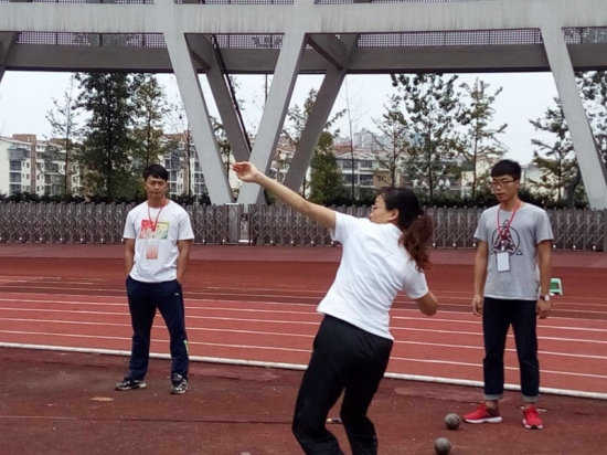 温暖的阳光洒在赛场上,一道道优美的弧线轻盈地划过天空。运动员们用手中的标枪向距离的权限发起一轮又一轮的挑战。标枪在空中轻盈的姿态,是运动员强健的力量和熟练的技巧的结合。经过两天的激烈比赛,在高手会交的运动场上,我院基础部刘畅老师成为女子标枪冠军、铅球季军;基础部赵丽琼老师带伤比赛成为铁饼季军,并获铅球第六名;基础部胡频老师获得标枪第四名;李光其老师成为男子铁饼和标枪的两个亚军;基础部的黄刚老师获得100米的第六名。最终我院教师荣获田径比赛团体第五名的好成绩。