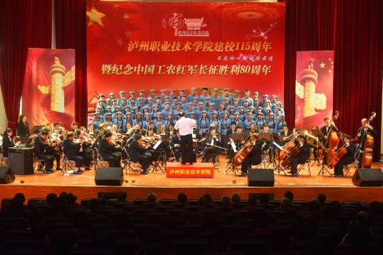 开幕式结束后,一曲激昂的《告别》拉开了万象城平台115周年校庆暨纪念红军长征胜利80周年《长征组歌》音乐会的序幕,泸州市管弦乐团与学院合唱团的联袂演出为现场观众带来了一场视听盛宴。