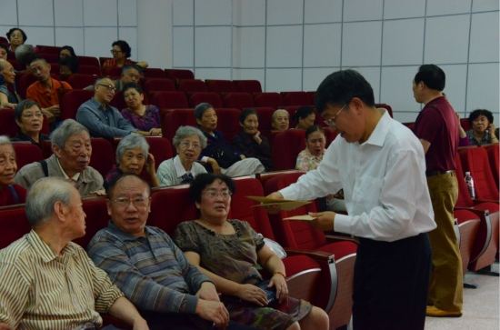 庆祝大会开始之前,学院领导与退休老同志们一起合影留念,并在办公室相关人员陪同下参观了新校区。随后,学院领导和相关人员参加了庆祝大会,大会由学院党委委员邓安容主持。大会上,副院长徐波宣布满十老人的名单,之后学院领导为满十老人祝寿。退委会阳庆元副主任总结了退委会一年以来的工作,张直明副院长介绍了新校区一期工程的建设和新校区二期、三期建设的规划等,学院党委副书记、院长贺元成同志给老领导、老同志们通报了学院的发展情况,并祝愿老领导、老同志们老有所为、老有所乐,老年生活幸福快乐,健康长寿!