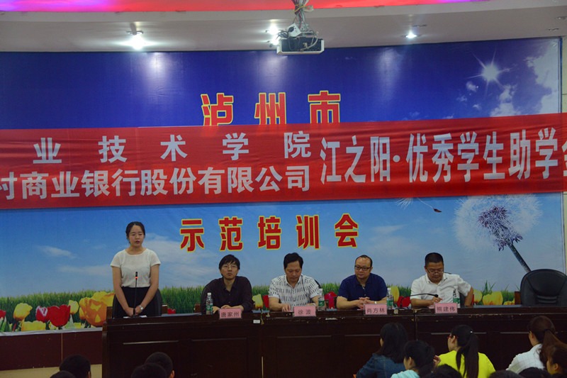 本站讯(信息来源:学生处)2016年5月19日上午10点,“江之阳·优秀学生助学金”颁奖仪式在学院求实厅举行。泸州江阳农村商业银行股份有限公司监事长肖方林、水井沟支行行长熊建伟、学院副院长徐波出席颁奖仪式。颁奖仪式由学生处处长唐家州主持。