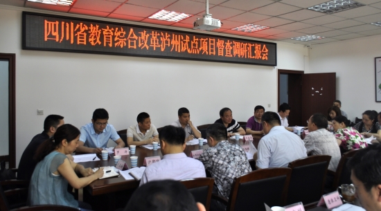 本站讯(信息来源:职教中心)5月12日上午,省教育厅调研员胥春海率由遂宁市教育局副局长祝宗山任组长、内江职业技术学院党委书记任孝勇任副组长的省教育综合改革项目督导组一行八人莅临泸州,对我市实施省教育综合改革项目推进情况进行检查。市教育局党委书记、局长张正平,副局长杜旭林、赖红艳及相关科室、市综改办相关负责人,以及我院高等职业教育研究中心负责人出席会议。