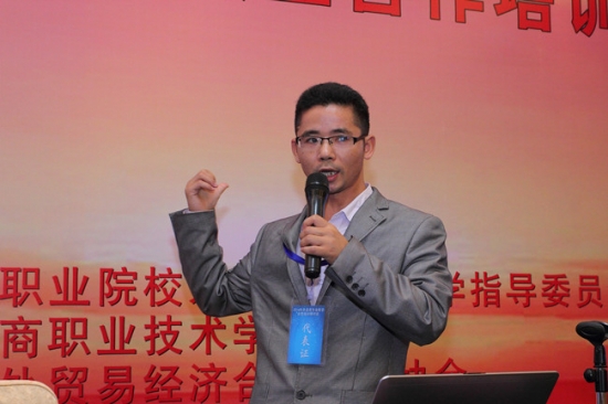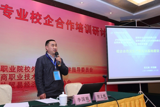 我院外语系主任贺义辉和合作企业深圳长田环保有限公司总经理李国顺受邀参加了此次大会,并以“应用英语专业1+1+N校企合作暨生产性实训基地建设”为题在大会现场发言,做了经验交流,深得现场领导和代表的好评。