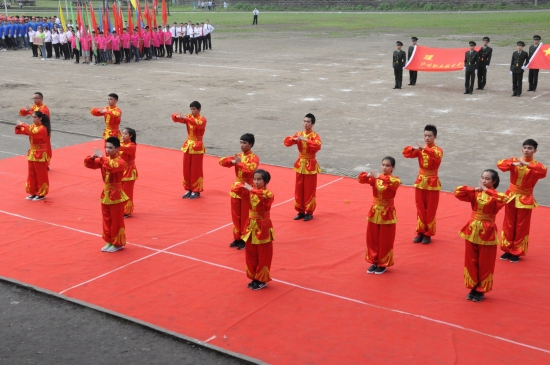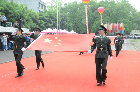 下午3点,开幕式正式开始。学院国旗队、院旗队、会旗队、彩旗队、裁判队、教工队、学生志愿者方队和各系部(院)运动员代表队等16个方队,喊着响亮的口号,迈着矫健的步伐,依次经过主席台,接受全院师生的检阅。