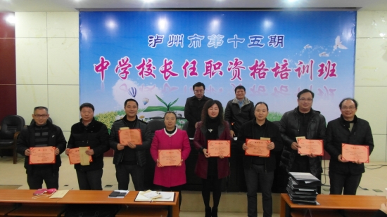 本站讯(信息来源:继教处)由我院承办的泸州市第十五期中学校长任职资格培训班圆满结业,来自泸州市四县三区和市直属学校的76名学员在完成了300学时的培训学习任务后全部结业,学院副院长彭涛出席了结业典礼。