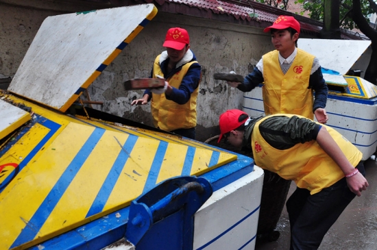 学生志愿者协助社区工作人员对社区环境卫生、市容市貌进行了全面整治,同时开展了创建文明城市意义、知识和社会主义核心价值观的宣传活动,引导社区居民以实际行动支持创建工作。