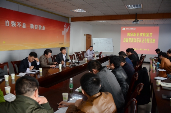 本站讯(信息来源:技师办)2015年11月21日上午,学院在行政楼六楼会议室开展质量管理体系建设讲座,特邀请人社部质量体系认证专家李健主讲。院长贺元成、副院长彭涛出席,相关院系的负责人、实训主任、考评员、督导员以及质量认证办公室成员参加了讲座。