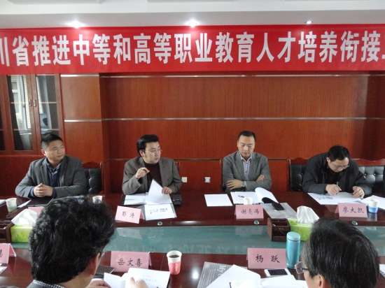 为贯彻全国职业教育工作会议精神,落实《国务院关于加快发展现代职业教育的决定》和《现代职业教育体系建设规划(2014-2020年)》要求,加快构建现代职业教育体系,全面推进中等和高等职业教育人才培养衔接,省教育厅拟制定中高职衔接政策文件。为确保政策制定的科学性、针对性和实效性,教育厅高教处、职成处组织抽调省内部分职业院校人员组成调研工作组,于2015年9月14-18日和10月12-16日,先后赴山东省、江苏省和我省南充、巴中、达州等地考察调研省市开展中高职衔接工作情况。调研工作组由我院副院长彭涛同志担任组长,负责调研设计和文件起草工作。