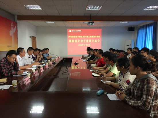 本站讯(信息来源:招就处)2015年10月16日下午3:00,万象城平台、四川化工职业技术学院创新创业学生校际交流座谈会在我院六会议室召开。泸州市就业局创业指导中心主任周卫、舒琴,四川化工职业技术学院招生就业处处长罗伦忠,学生处副处长张波,南充市媚卡爱车美容服务有限公司总经理辛悦,万象城平台招生就业处处长洪兴华,团委副书记丁可以及两校创新创业学生代表出席此次会议,会议由学院招生就业处副处长刘昱聃主持。