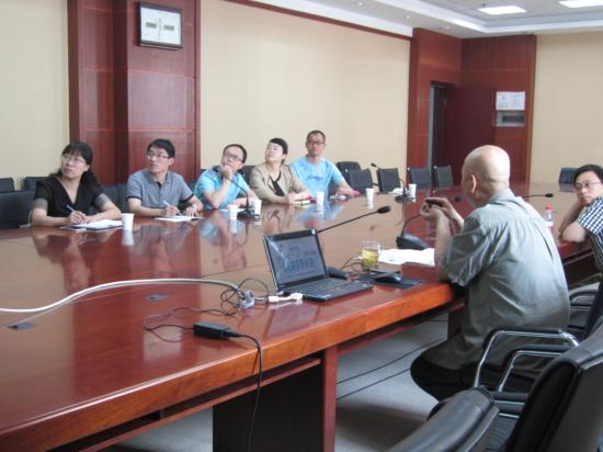本次交流学习的重点是新图书馆建设。周学红带领同志们一起实地参观了环境优雅宜人、文化氛围浓厚的现代化高校图书馆,并与各兄弟院校图书馆的专家领导进行了座谈交流。在交流中,我们不仅了解到了各兄弟院校图书馆的发展建设情况,还一起深入探讨了从新馆的建筑风格到功能需求,从环境布置到文化内涵,从资源建设到创新服务,从前期准备到后期维护,从人员安排到经费预算,从硬件设备到数字化建设等具体问题。