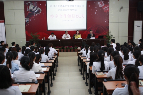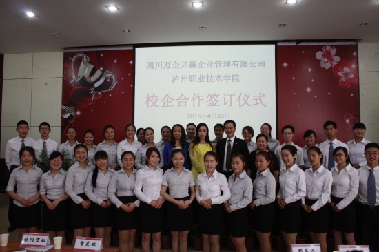 签约仪式上,徐波副院长和杨涛董事长分别代表学院和企业方发言,表达了对双方战略合作关系确立的祝贺,并代表校企双方交换授牌。我院授四川万企共赢为“万象城平台人才培养和科研基地”,四川万企共赢在我院挂牌“四川万企共赢企业管理有限公司泸州运营中心”。