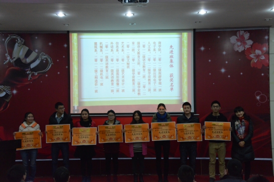 2014年,学院涌现了众多的优秀个人和集体,创造了一个又一个可喜的成绩。颁奖典礼上,贺元成、张爽等领导向获得国家奖学金、国家励志奖学金、“代英”奖学金、先进班集体、三好学生、优秀学生干部、优秀团员、优秀团干部、志愿服务先进个人等九个奖项的获奖代表颁发了奖状、证书。
