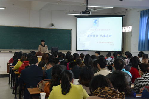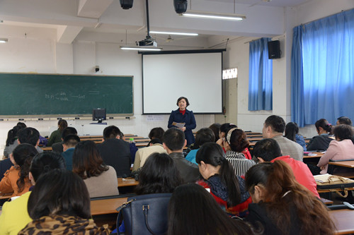 本次教研活动以“高职教学方法选用”为主题,由学院教务处潘绿萍处长主持,分四个环节进行。首先,教育科学教研室付先全老师在2013级语文教育2班为参会教师上了一堂题为“面对挫折,从容应对”的大学生心理健康教育观摩课;课后付老师面对参会师生说课;然后由学生评课;最后是教师评课、讨论。