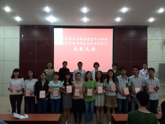 教育督导中心负责人汪玲同志在会上介绍了教育督导中心的相关情况,并宣读《关于表彰第十届学生教学信息中心优秀信息站长及信息员的决定》(院督字[2014]3号)及《关于成立第十一届学生教学信息中心的通知》(院督字[2014]4号)文件;第十届优秀教学信息站长及教学信息员代表、第十一届学生教学信息中心代表结合自身学习和信息采集工作的切身经历作了交流发言;教育督导中心对3名优秀信息站站长和42名优秀教学信息员进行了表彰。