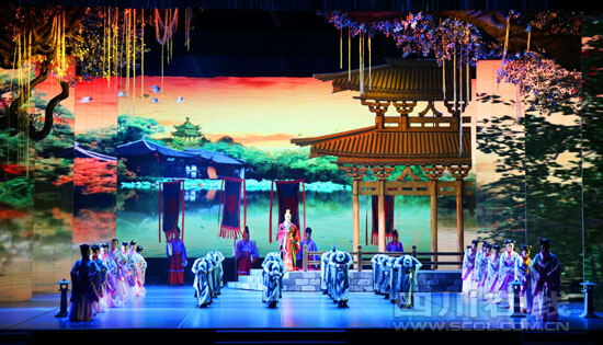 昨日下午,所有的演职人员在泸州大剧院进行了最后一次带妆彩排。我院41名同学参与了其中《梦回南宋》、《油纸伞》的演出。