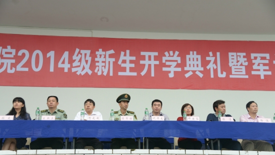 本站讯(信息来源:学生处)2014年9月1日上午8点20分,学院2014级新生开学典礼暨军训开营仪式在学院足球场隆重举行。武警泸州市支队支队长薛军强上校,泸州军分区军训办副主任王新立中校,以及学院党委书记代华龙,学院院长贺元成教授,副院长邓安容、彭涛、徐波等领导莅临了本次开学典礼暨军训开营仪式,出席仪式的还有学院相关职能部门以及教学院系负责人等。仪式由学院党委副书记、纪委书记张爽主持。