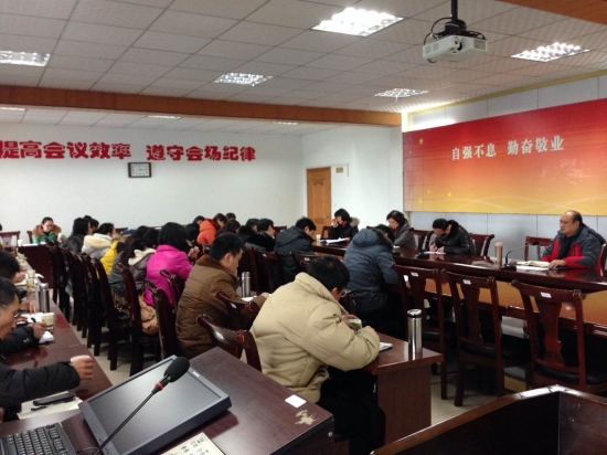 本站讯(信息来源:教务处) 2014年2月9日,学院开学第一天。上午10:30,教务处组织召开了处务工作会,处长潘绿萍对全体员工提出了2014年的学习要求与工作要求。教务科、实训科、教材科等部门的同志汇报了开学准备工作和近期工作情况。