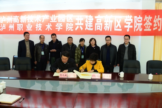 在泸州市“六个突破,四年翻番”发展战略中,职业教育将为泸州地方企业提供重要的人才和智力支持,为此,泸州市政府专门出台多个文件有力促进了我院与泸州各园区在合作办学、共建实训基地和共同技术研发等方面合作。2014年1月,泸州市人民政府下发《关于同意共建万象城平台高新区学院的批复》,同意由我院与泸州高新技术产业园区管委会共建万象城平台高新区学院。