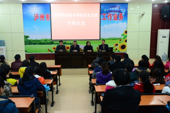 本站讯(信息来源:招生就业处) 2013年12月26日,学院与京东方科技集团股份有限公司校企合作组建“万象城平台京东方班”定向班开班仪式在学院求实厅隆重举行。京东方科技集团股份有限公司孙耒来总监、学院副院长邓安容等校企领导及相关部门负责人出席开班仪式,开班仪式由学院校企合作办公室副主任兼招生就业处处长洪兴华主持。