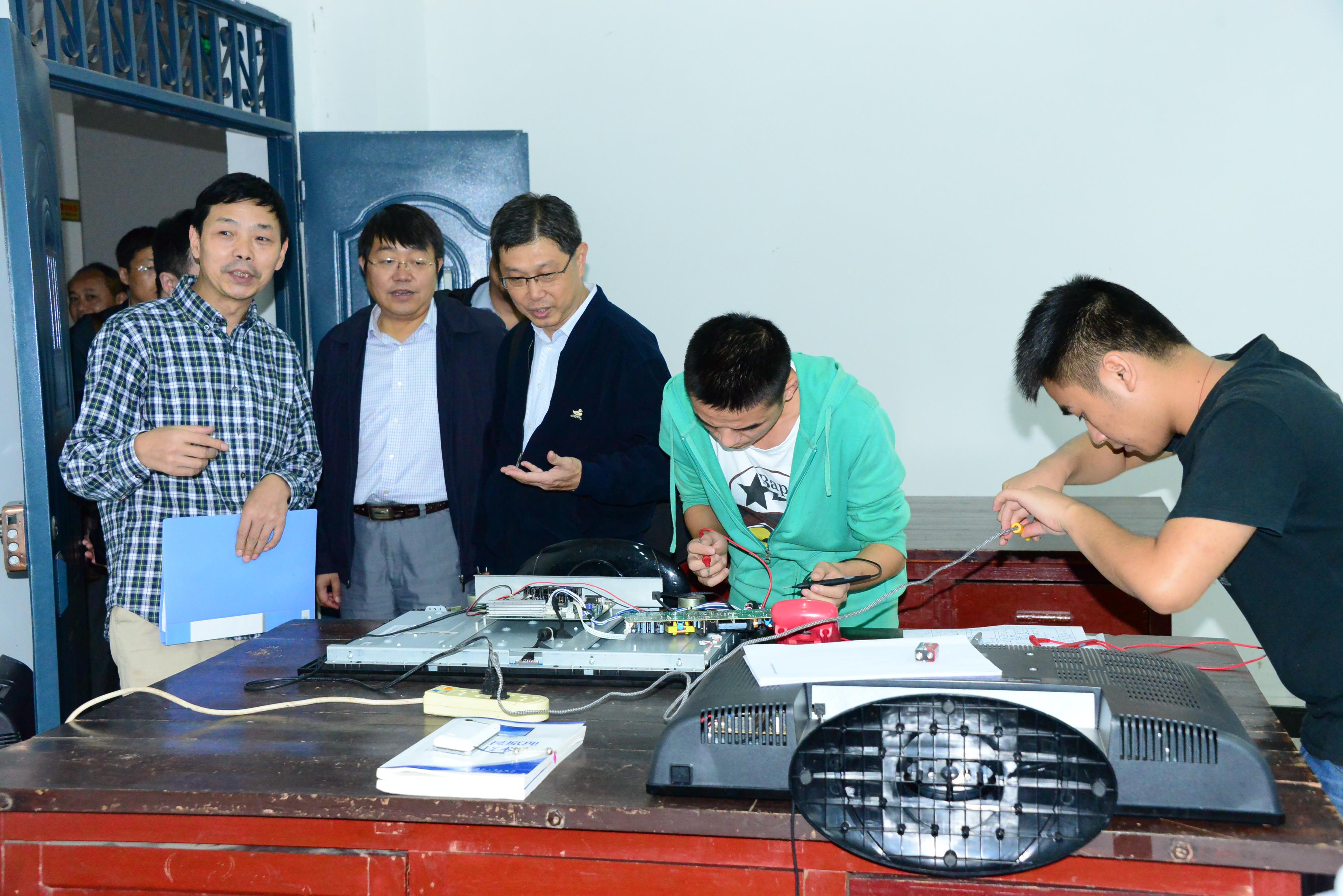 验收汇报会后,验收组领导、专家和与会中高职院校代表参观了我院校园环境和实训基地,并在代英楼前合影留恋。