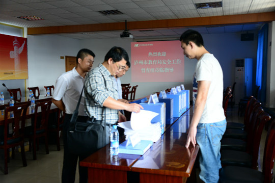 督查组由市教育局安全科科长陶俊梅牵头,泸州高中等近十所市直属学校分管安全工作的负责人共同组成。督查组到达学院后,分为多个小组,分别对我院交通安全,食品安全,宿舍安全,消防安全,人防、技防、物防设施,安全档案建设等进行逐项检查。