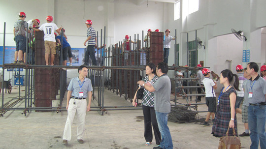 朱锡玉局长和巫昌恒在我院副院长彭涛、建筑系相关负责人陪同下,深入建筑工程系校内实训基地,对砌筑、抹灰、镶贴、钢筋、模板、架子实训场及其配套设施进行细致检查、询问,并对整改情况提出了指导性的建议和意见。同时认为整改后的实训基地基本满足《四川省建设类专业学生“双证制”教育管理办法》(川建发[2012]28号)的要求,初具规模,基本能够开展6个工种的培训与鉴定工作,并表示积极向省厅汇报。