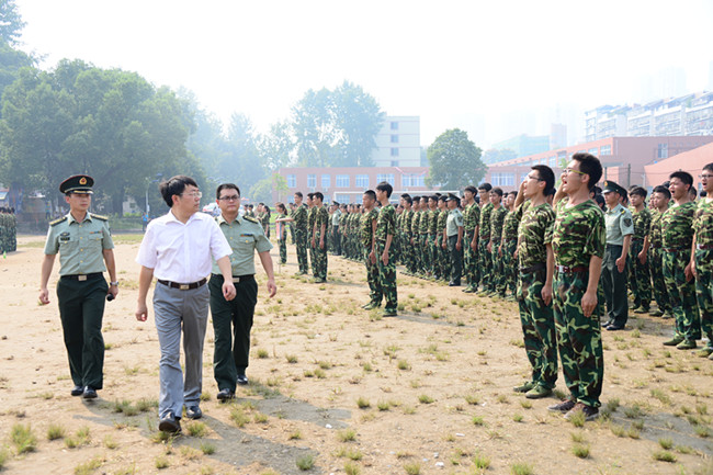 隆重的升旗仪式后,贺元成院长在李刚少校和阅兵总指挥的陪同下,对全体军训学员进行了检阅,各列队方阵受到极大鼓舞,一声声“院长好!”、“自强不息、勤奋敬业!”响彻整个阅兵场。