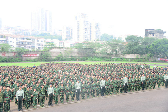 新生开学典礼暨军训开营仪式结束后,2013级全体新生在教官的带领下开始了此次军训。