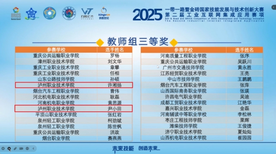 2025年9月17日,我校参赛师生在2025一带一路暨金砖国家技能发展与技术创新大赛工业互联网集成应用赛项全国决赛中,表现卓越,斩获高职组全国一等奖1项、全国二等奖1项,教师组全国三等奖2项。