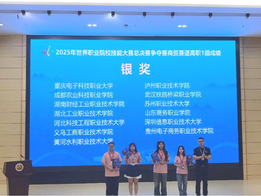 8月25日至29日,2025年世界职业院校技能大赛商贸赛道(高职组)在陕西咸阳举办。我校由中国酒业学院学生梅媛媛、谢婷、杨雪、曾雨旺组成的代表队,在指导教师吴雪莲、牟红的带领下,与来自全国的214支队伍、800余名选手同场竞技。经过多轮激烈比拼,最终斩获我校在本届赛事中的第2枚银牌。