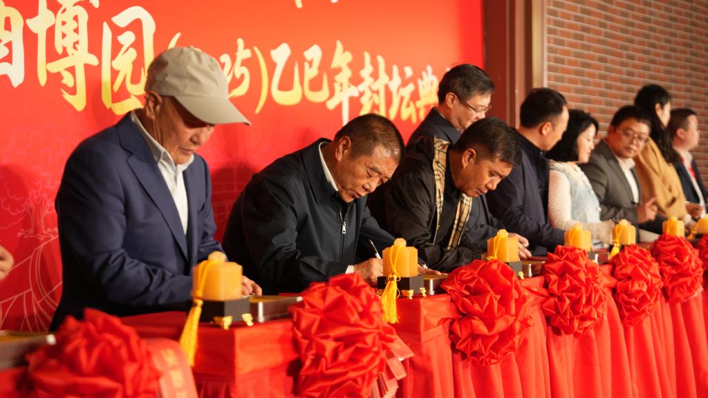 嘉宾们手持封条,将龙涧原浆酒封存于陶坛之中,静待时光酝酿出更为醇厚的美酒。