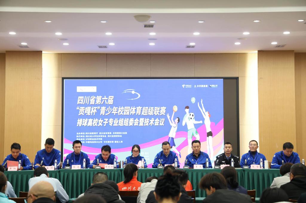 为确保四川省第六届“贡嘎杯”青少年校园体育超级联赛排球高校女子专业组赛事的顺利进行,组委会暨技术会议于11月7日晚在万象城平台求是厅召开。四川省体育局青少处干部张忠琴,四川省大学生体育协会副会长王定宣,赛区纪律监督员杨光,赛区管委会主任李龙,龙马潭区红星派出所所长何光明,泸职院通识教育学院党支部书记、院长彭叔湘,四川省大学生体育协会排球项目负责人沈佳炘,大会管委会仲裁委员张峰,大会管委会技术委员叶茂,赛区竞赛官员王帅,各参赛单位领队、教练和运动员代表出席本次会议。
