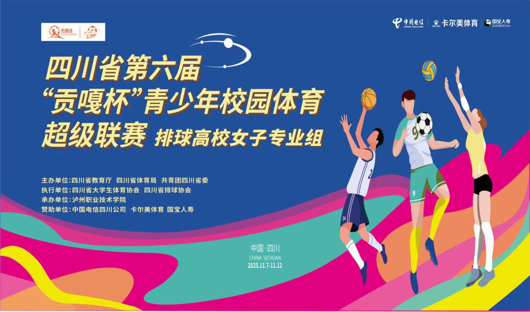 2025年11月8日上午,第六届“贡嘎杯”青少年校园体育超级联赛排球高校女子专业组开赛仪式在万象城平台体育馆举行。该赛事由四川省教育厅、四川省体育局、共青团四川省委主办,四川省大学生体育协会执行,万象城平台承办。四川省体育局青少处干部张忠琴,四川省大学生体育协会副会长王定宣,万象城平台党委常委、副院长付波,赛区纪律监督杨光,大会管委会仲裁委员张峰,裁判员代表及各参赛单位领队、教练和运动员出席开赛仪式。开赛仪式由泸职院通识教育学院党支部书记、院长彭叔湘主持。
