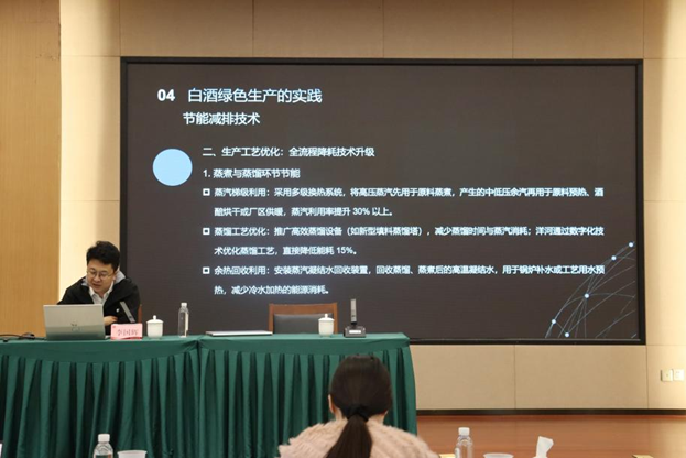 结合多年参与白酒分析项目的实战经验,李国辉通过典型案例,生动阐释了白酒品质检测的前沿技术,并分享了生态酿造、可持续农业、质量风险控制等领域的创新理念与管理策略。此外,他还就白酒生产中的碳排放追踪、绿色农业政策应用及生产数据分析等内容进行了系统讲解,为学员提供了宝贵的行业洞见。